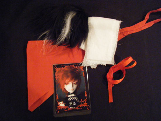 衣装、ブーツ、ボアウィッグ、マスク、リボン、包帯、アームウォーマー(片腕)、チョーカー、カードのセットです。箱は付きます。