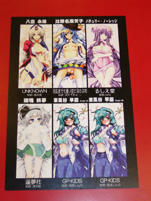 | 優勝賞品 | (1)某合同企画東方マイクロファイバータオル6枚セット (2)ゲン消し(仮) (3)白玉団子イラスト入り缶バッチ7個セット(シークレット入り) |