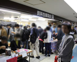 結果的に12:00開場時の第一陣が1時間ほどで引いた後、 14:00以降からほぼ満員の状態が続きそのまま閉会を迎えることが出来ました。 閉会時間の16:00までの一般参加者は約300名との報告が入っています。